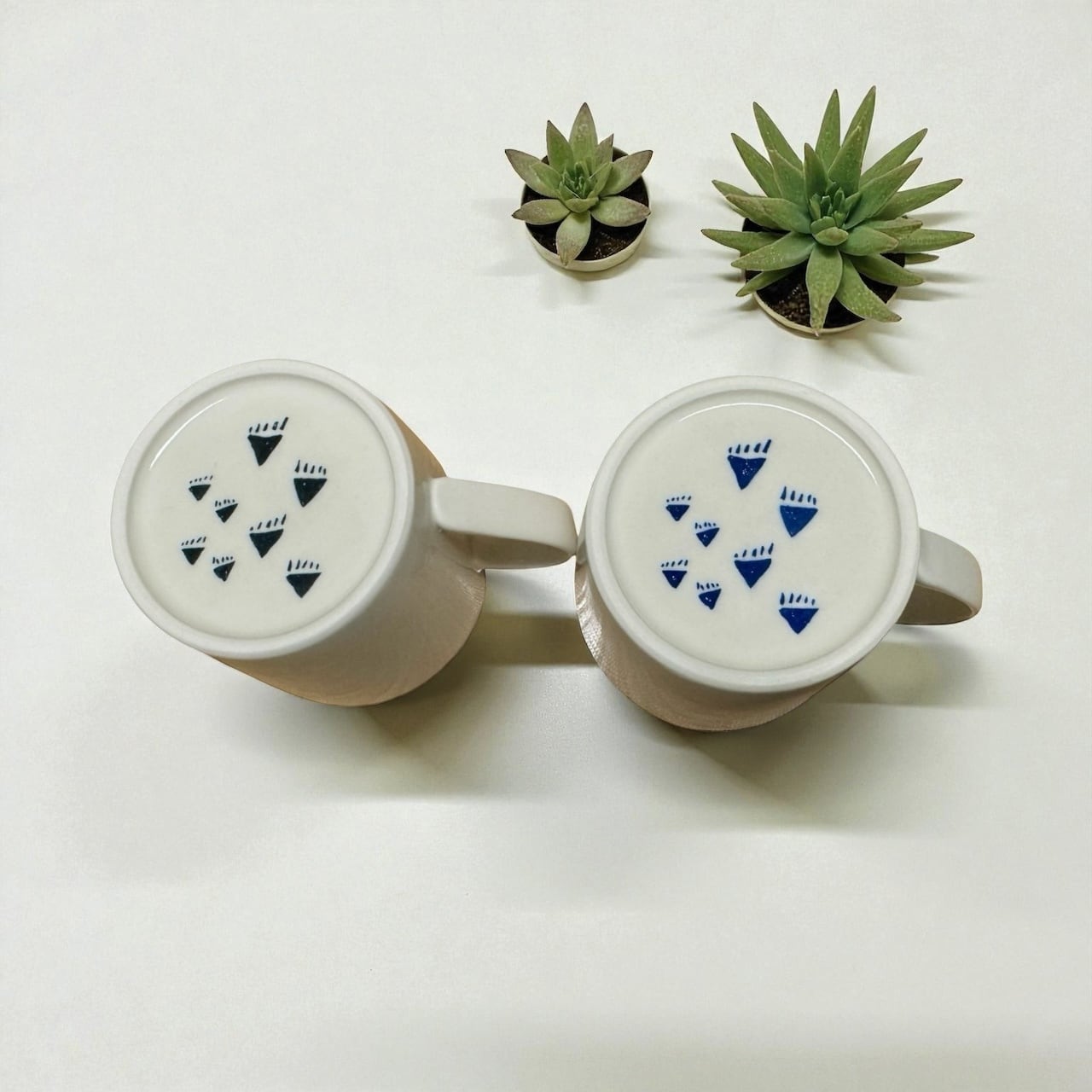 正面には親子のおさんぽテディ、底面には「とことこ歩く足あと」をワンポイントで。飲み終わってマグをひっくり返したとき、ちいさなサプライズのように、ふっと力が抜けるような仕掛けをしのばせました。