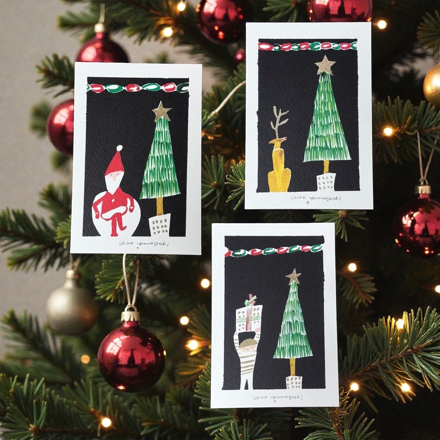 画家・山口一郎さんならではの、すこしユーモラスであたたかいクリスマスカードです。
